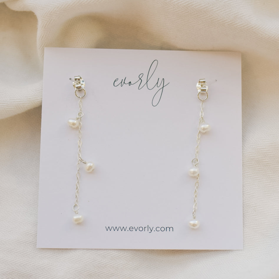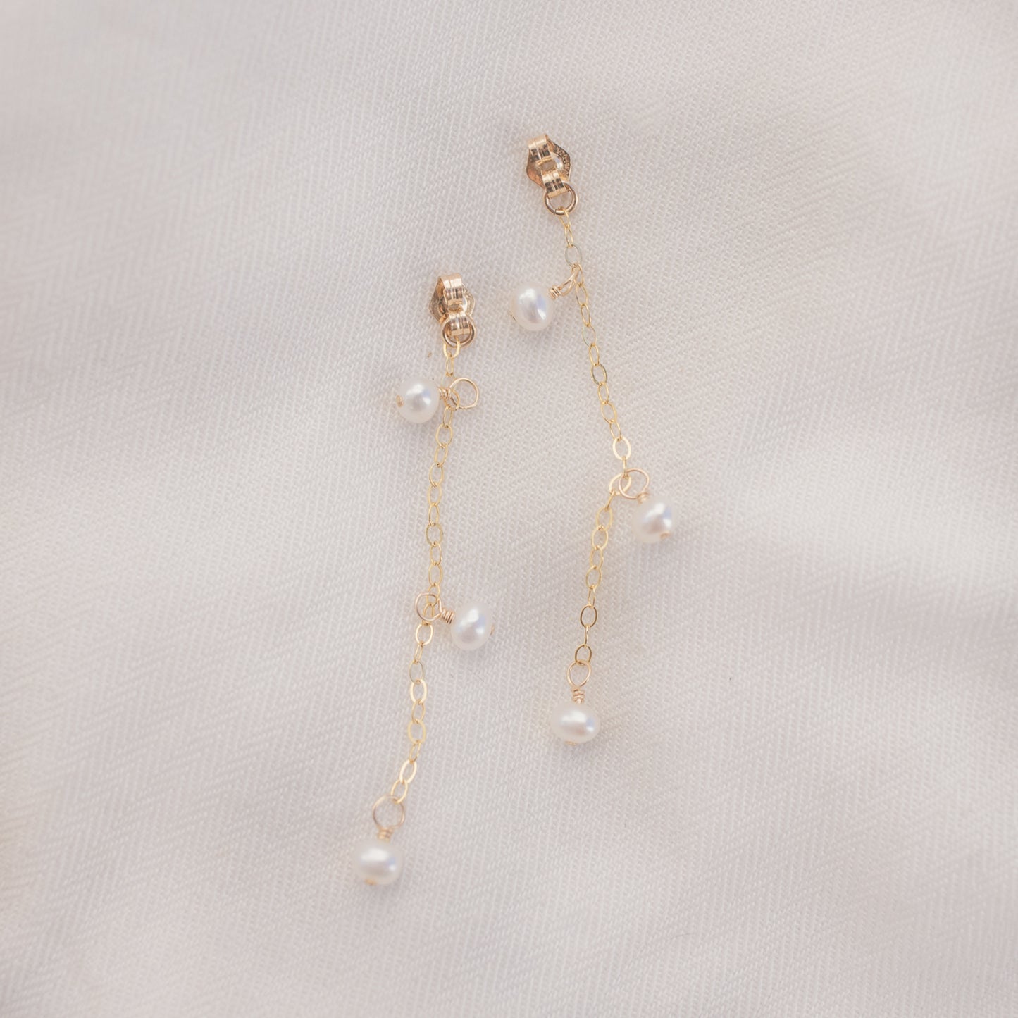 Add a unique drop to any of our studs by adding this delicate backdrop. Features our best selling droplet design with three freshwater pearls.